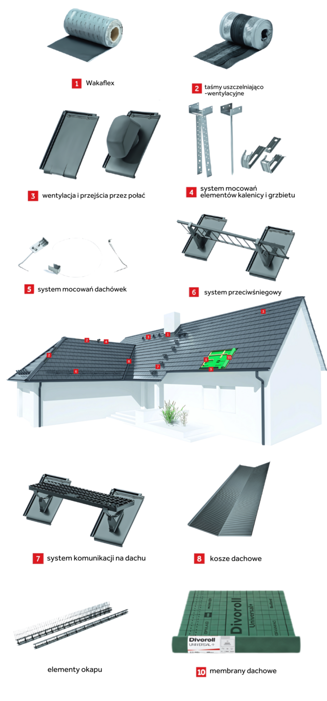 Dom to miejsce, które powinno dawać Tobie i Twojej rodzinie poczucie bezpieczeństwa. Nasze dachówki ceramiczne i betonowe, wspierane kompletnym systemem akcesoriów, to gwarancja niezrównanej trwałości, szlachetnego wyglądu i perfekcyjnego dopasowania każdego detalu.