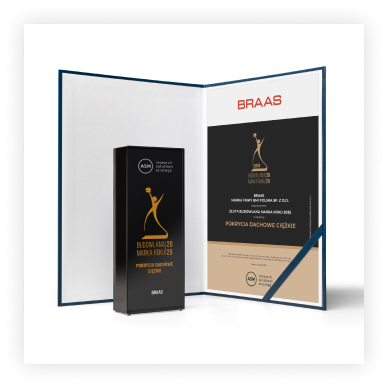 Dachówki Braas są doceniane zarówno przez inwestorów jak również przez wykonawców. W 2025 roku Braas po raz kolejny zdobył tytuł Złotej Budowlanej Marki Roku w kategorii Pokrycia dachowe ciężkie.