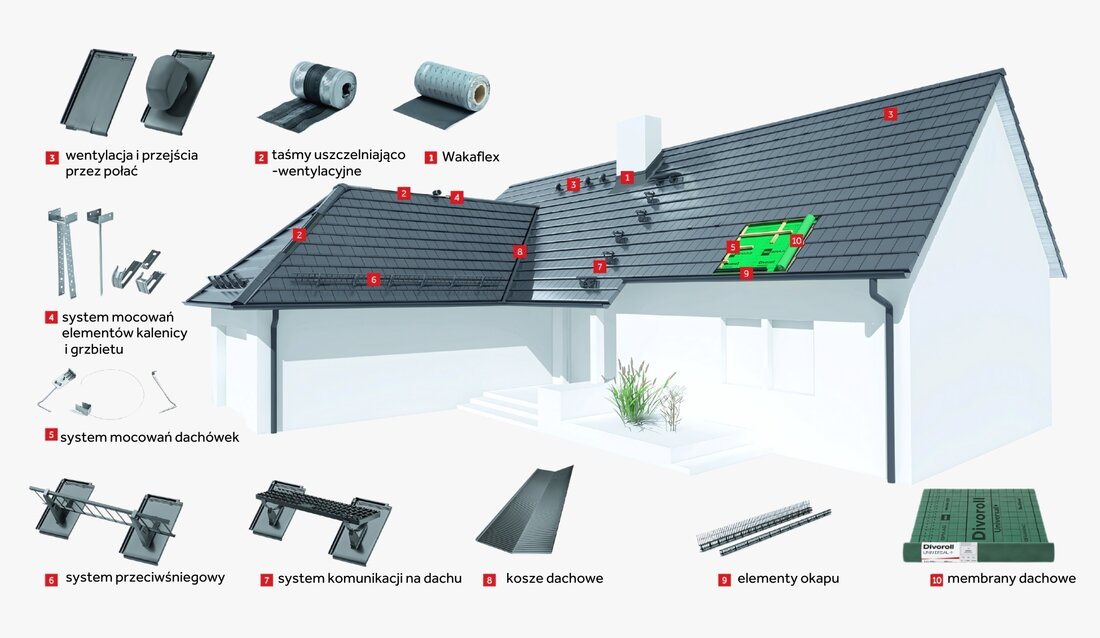 * w porównaniu z blachodachówką, działanie potwierdzone badaniami w Centrum Technicznym BMI 2025.